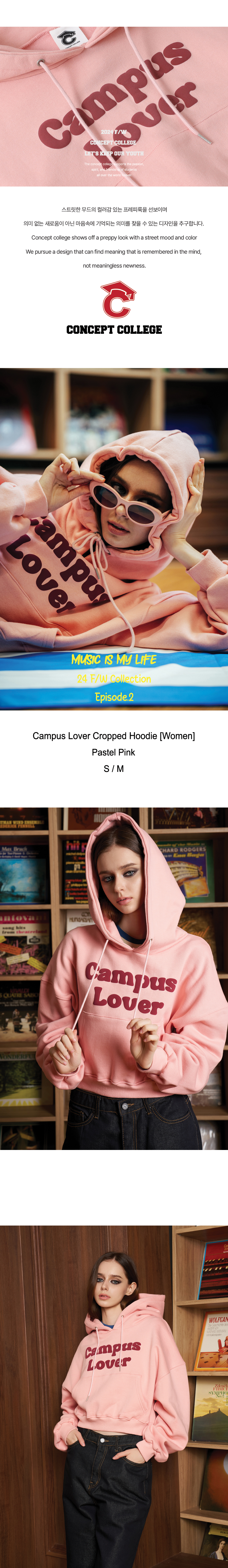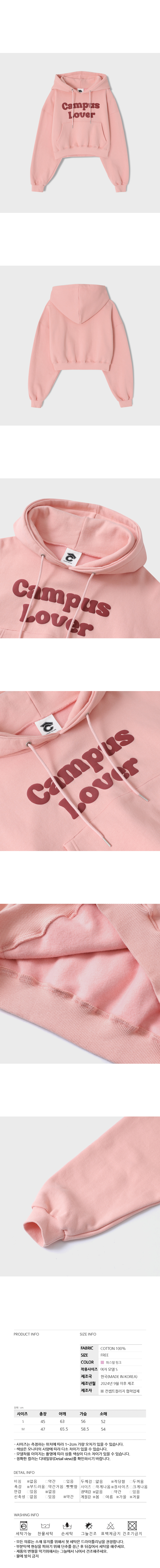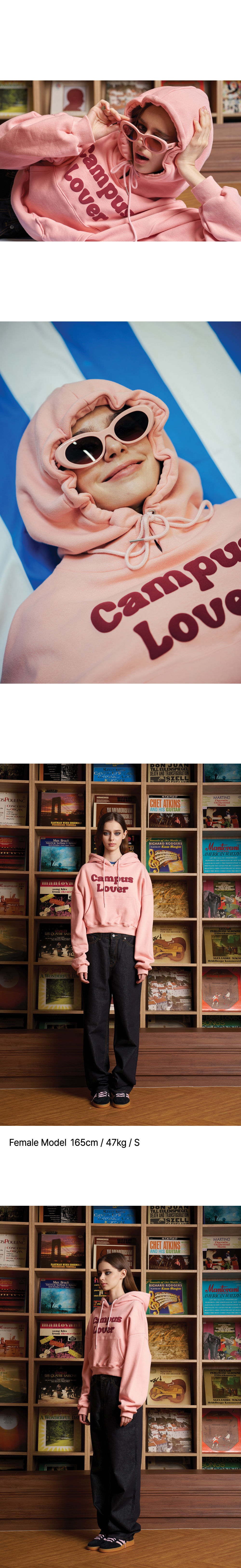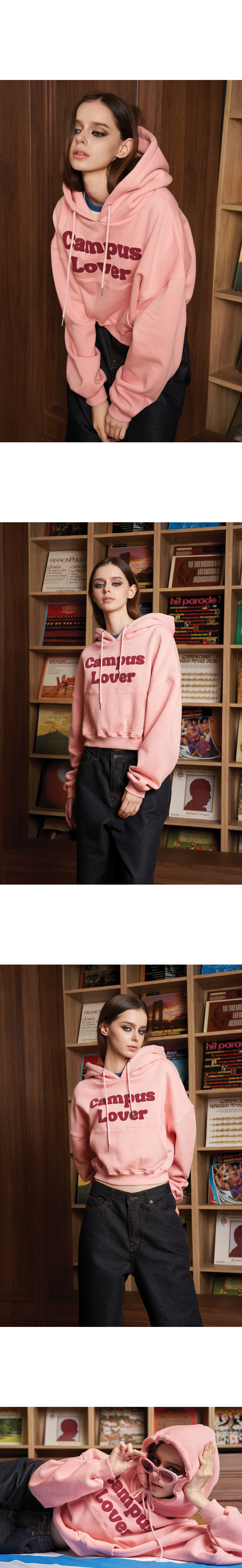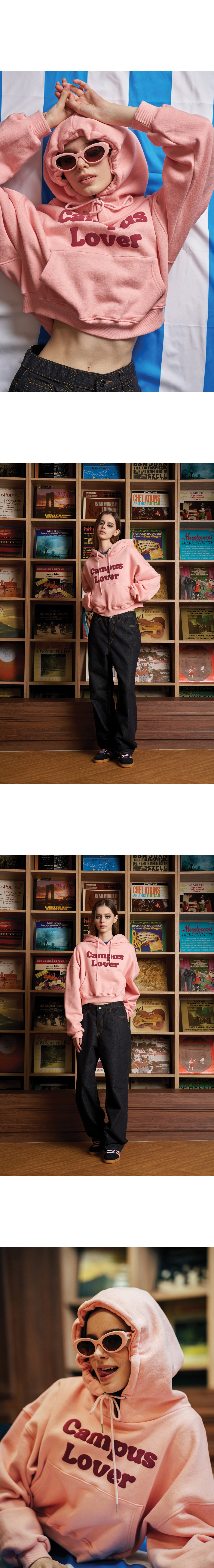 가슴 전면에 Campus Lover 문구가 더해진 여성용 크롭 후디 스웨트 셔츠입니다.