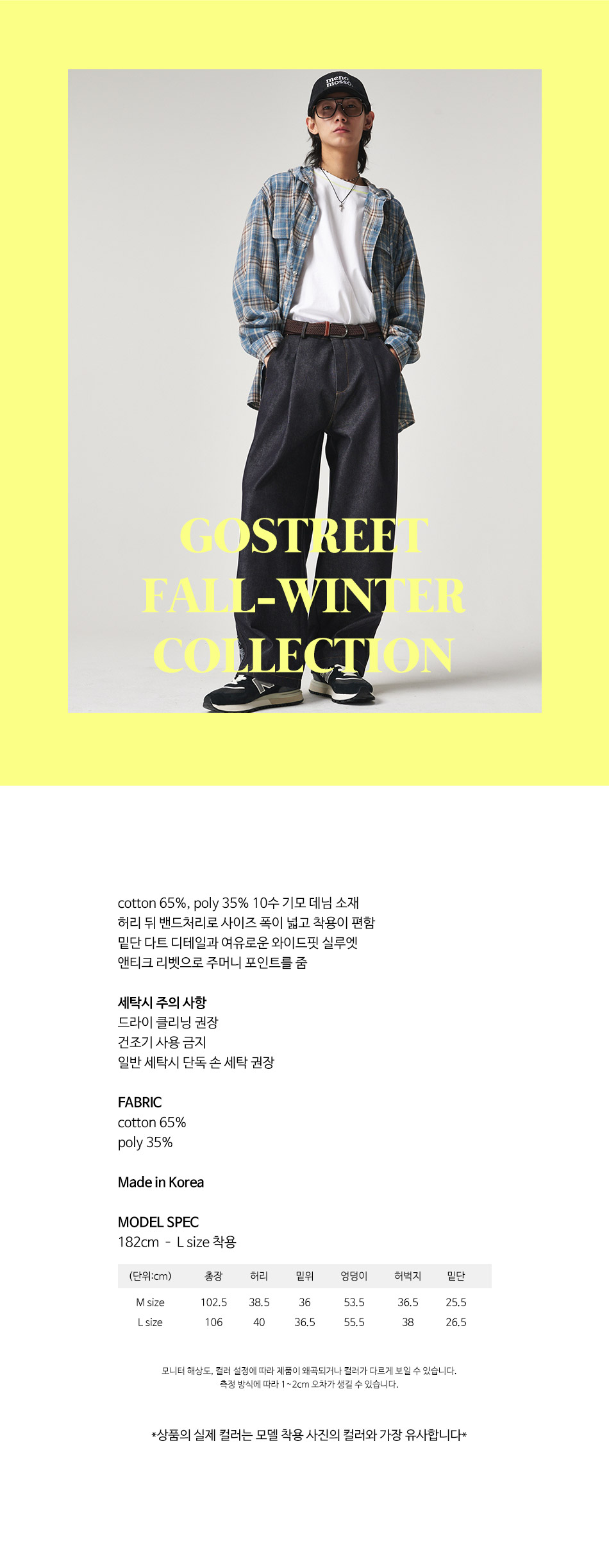 슬라브원단에 빈티지한 워싱 및 오염된듯한 워싱을 한 데님팬츠