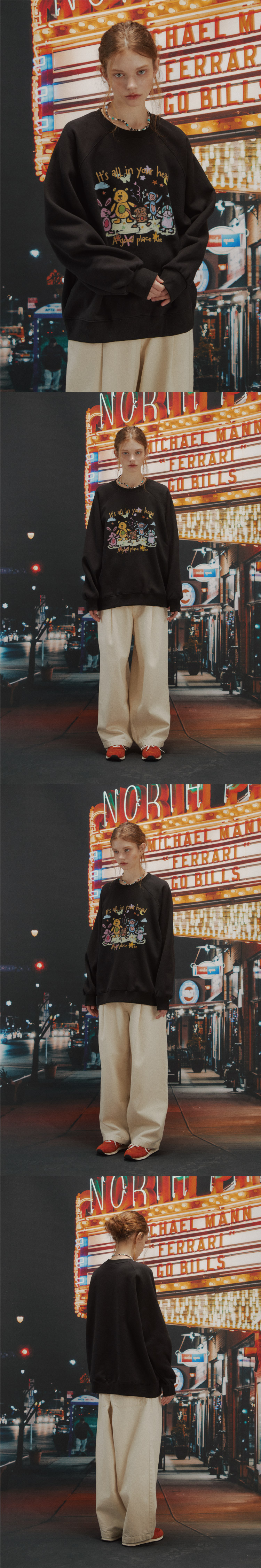 여유로운 품과 레글런 패턴으로 제작되어 벌룬핏으로 연출 가능한 남녀 공용 아이템입니다.