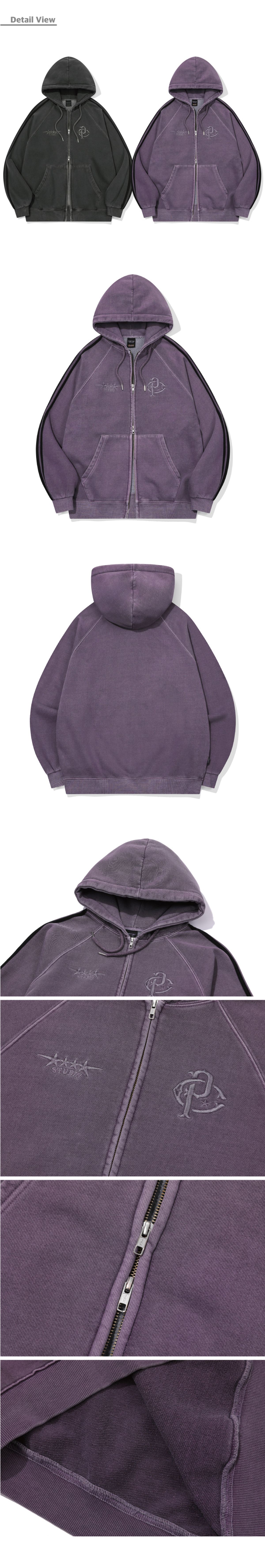 アップリケSTGMピグメントウォッシュドオーバーサイズジップアップパーカー - チャコール