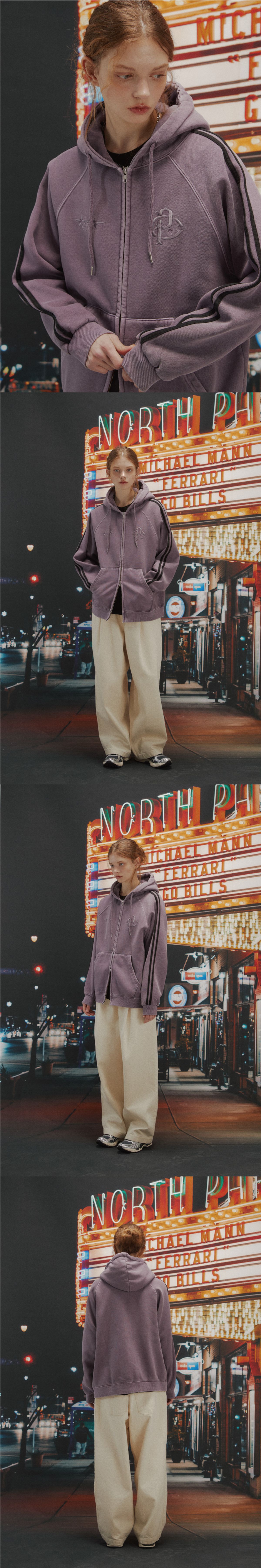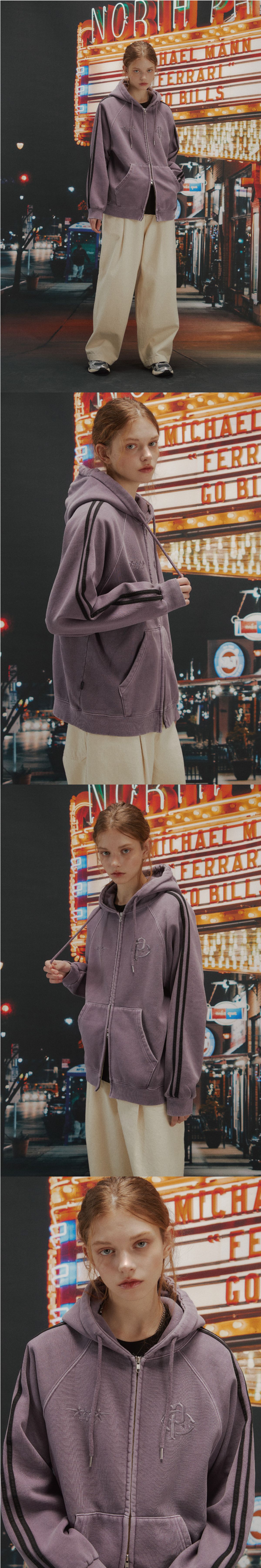 자수 아트웍이 피그먼트 워싱되며 가공 처리하여 유니크한 무드를 연출했습니다.