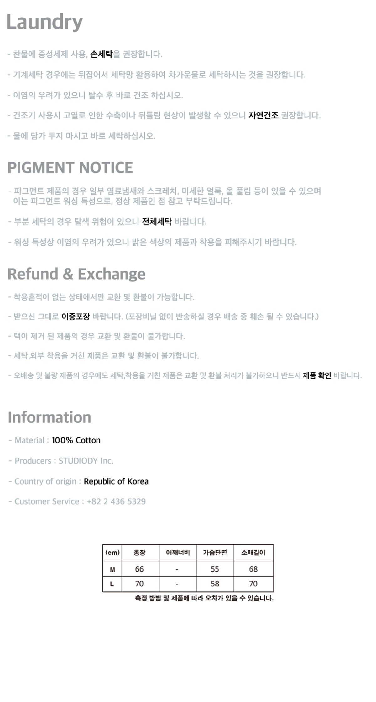 옷의 형태를 '한결같이' 유지하기 위하여 텐타, 덤블 가공으로 원단 수축율과 뒤틀림을 최소화하였습니다.