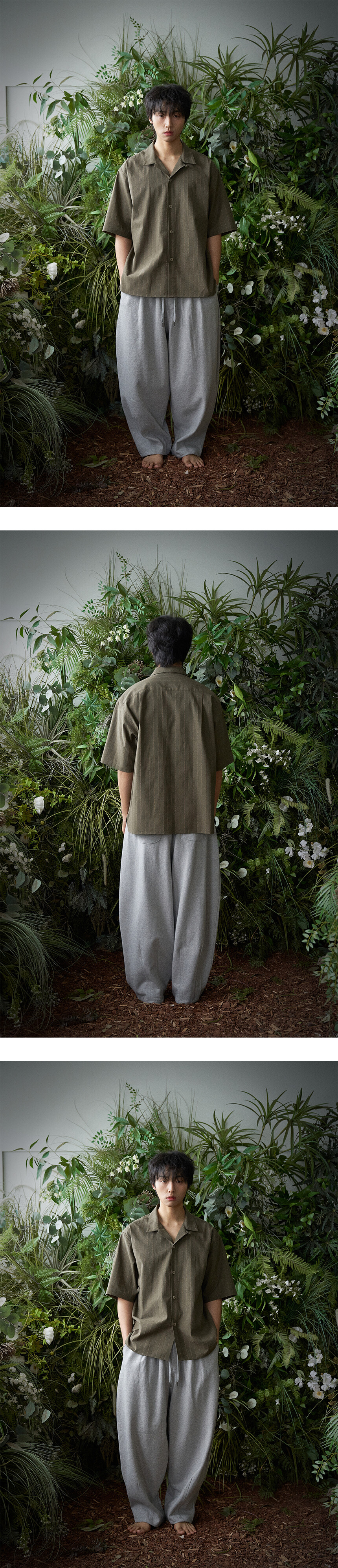 リネン スパンデックス オーバーサイズ ハーフシャツ ブラック
