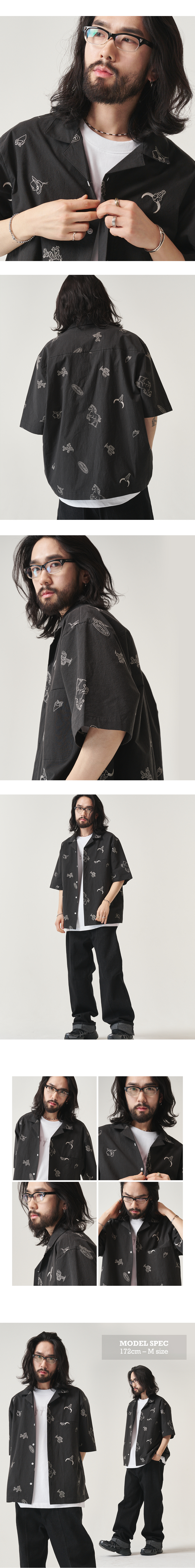 ベータ オープンカラー 半袖シャツ(ブラック)