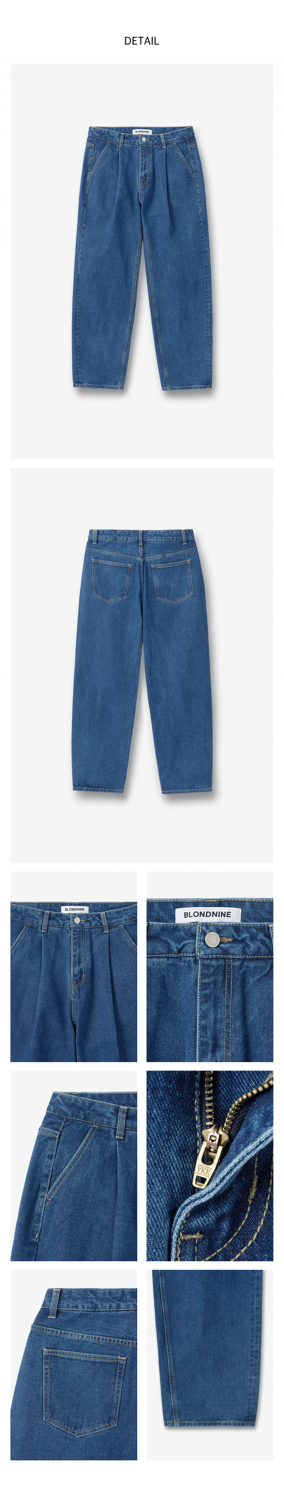 무릎 핀턱 데님 벌룬 팬츠 진청