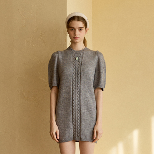 로비 하프 케이블 니트 원피스 차콜