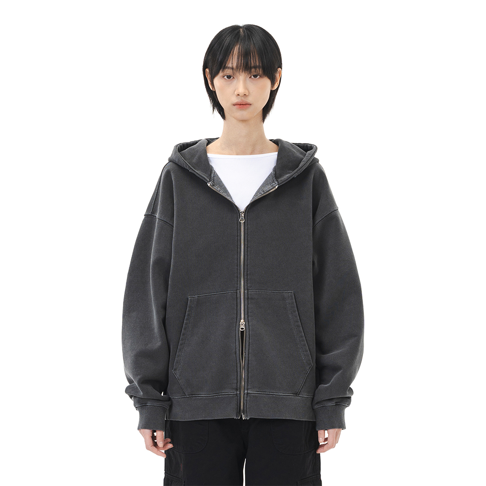 Applique STGM Pigment Washed Oversized Zip-up Hoodie Charcoal