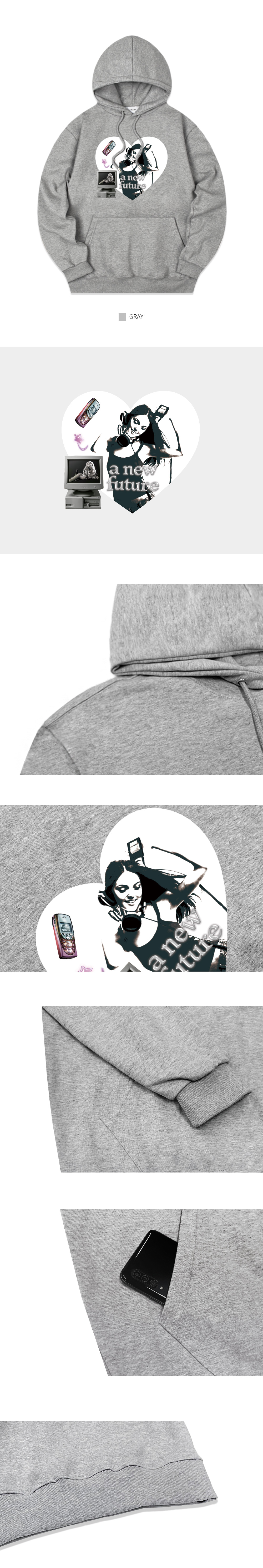 PLANET 오버핏 후드 티셔츠[화이트 메란지]