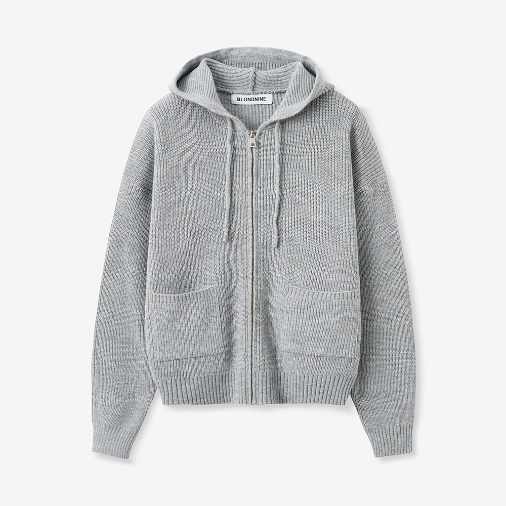 2-WAY 스켈레톤 후드 집업 니트 블랙