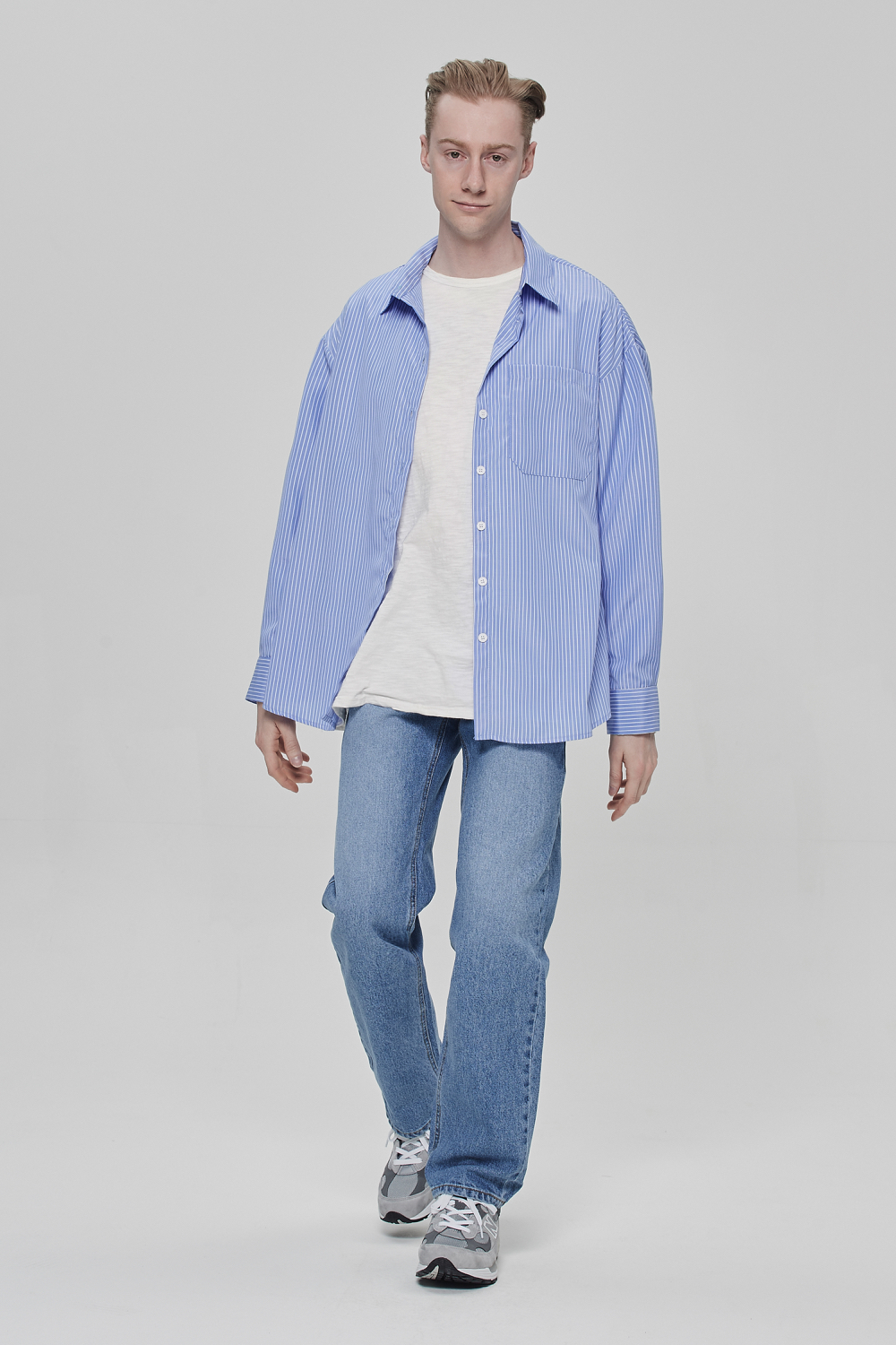 BASIC LOOSEFIT DENIM WITH WHITE TEE LIGHTBLUE