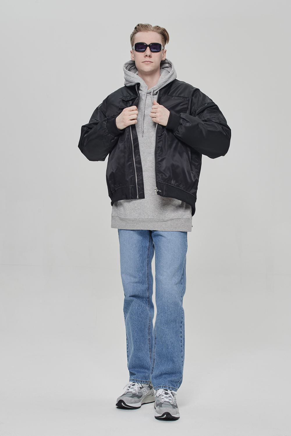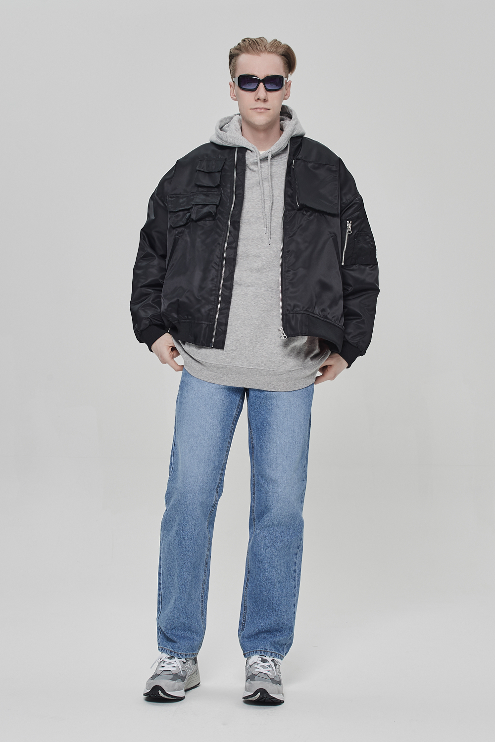 뒷주머니 지퍼 포켓이 포인트인 와이드 데님