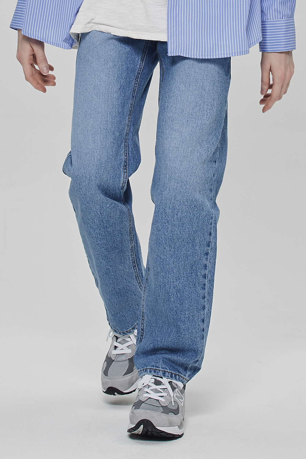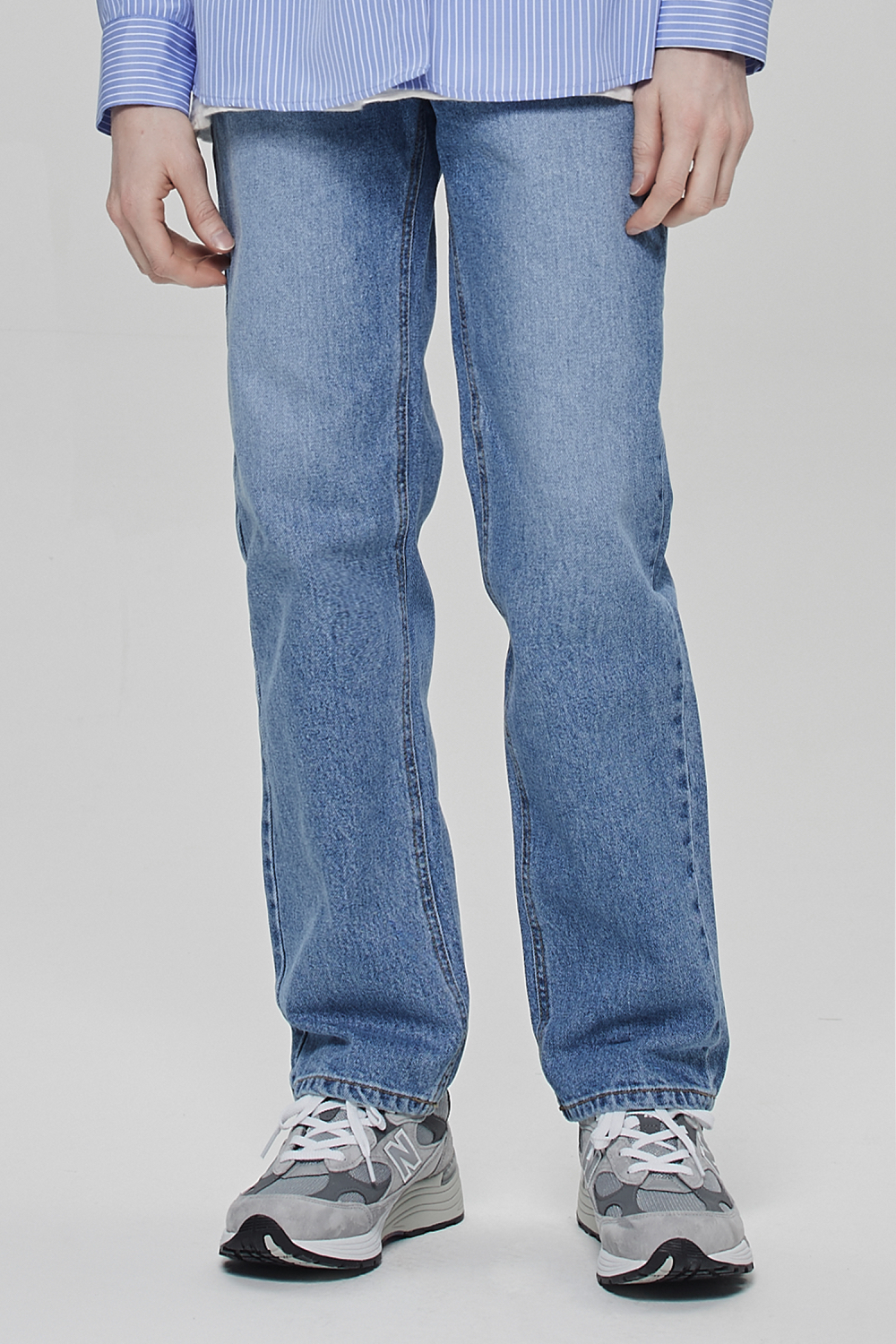 TWIST INCISION WASHING DENIM PANTS(MEDIUM BLUE)