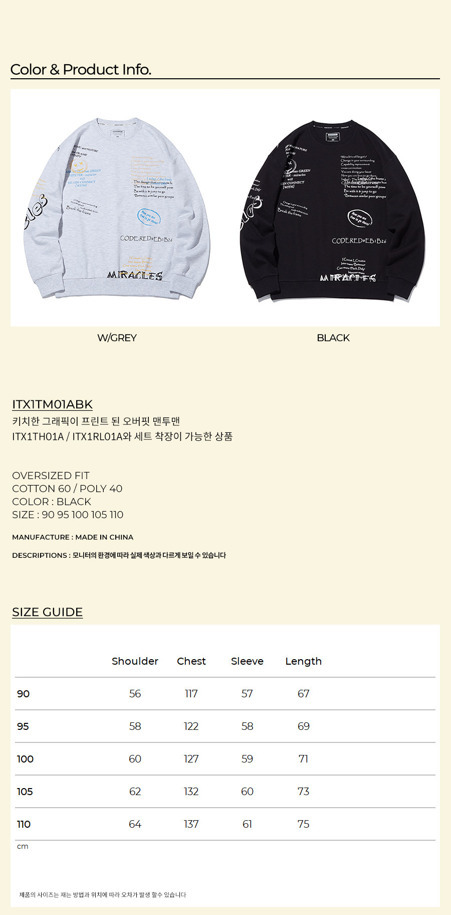 S~3XL EVOLUTION 오버핏 맨투맨 (G-베이지)