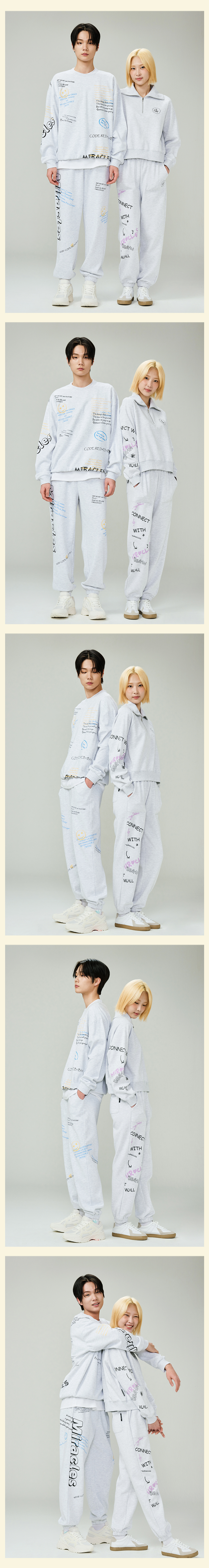 포지티브 자수 레글런 스웨트셔츠 멜란지화이트