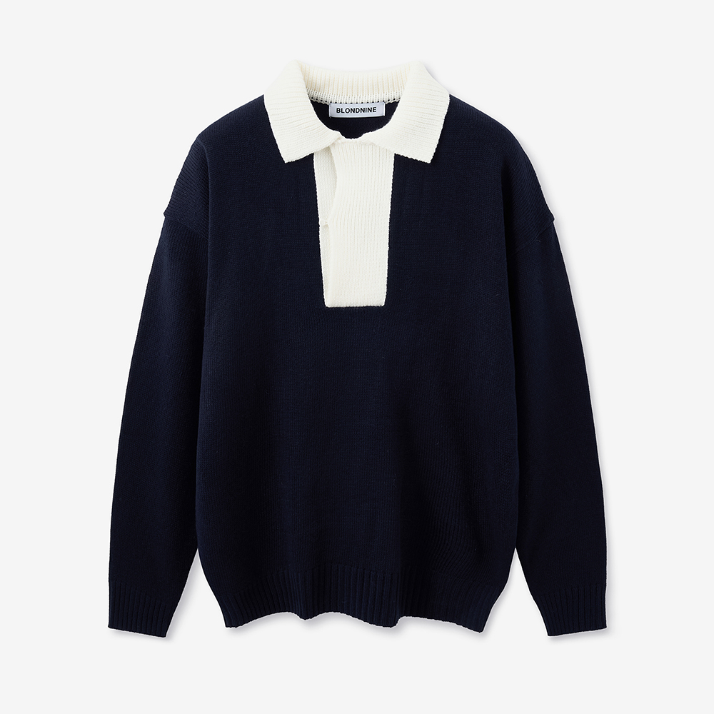 BESSEGGEN MASCULINE SWEATER - GREY MEL. / COBALT / OFF WHITE / NAVY