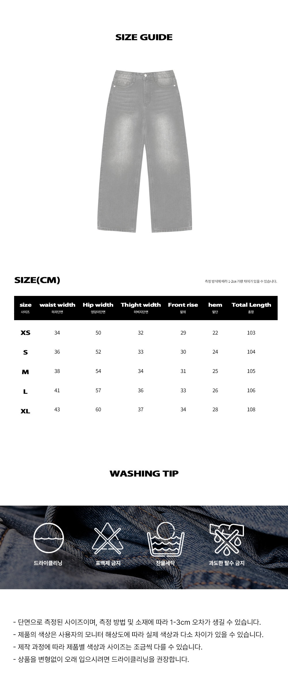 슬라브원단에 빈티지한 워싱 및 오염된듯한 워싱을 한 데님팬츠