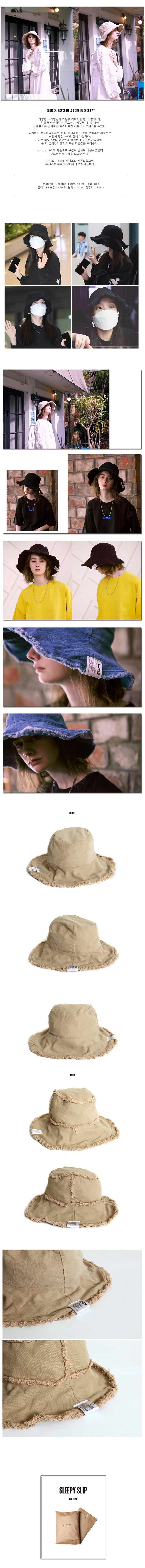 스트링 디테일로 안정감 있게 착용되는 니트 비치 버킷햇
