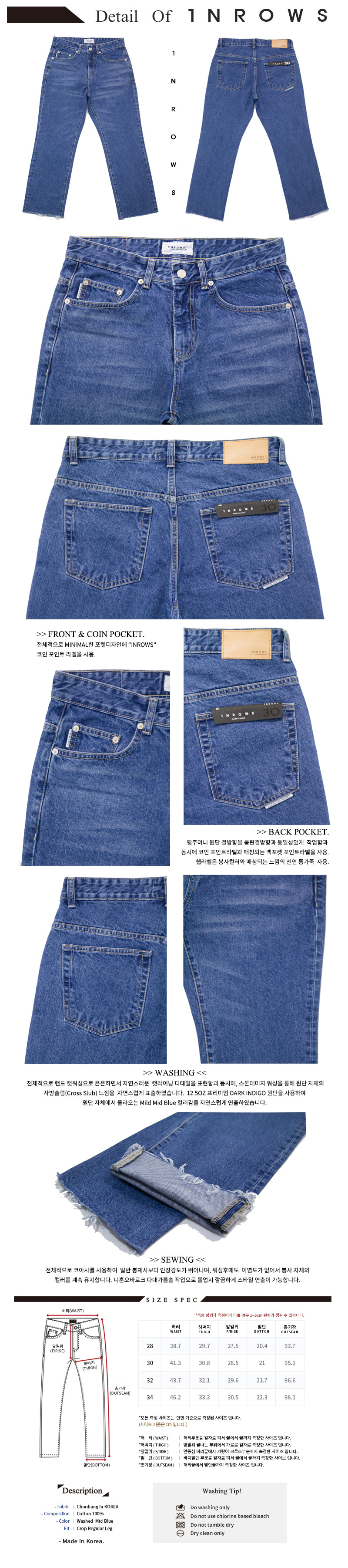 뒷포켓 D자수가 포인트인 와이드 데님팬츠