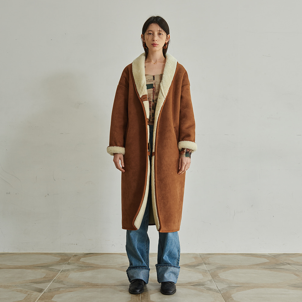 모헤어 소재를 사용해 부드럽고 따뜻한 여유로운 핏의 하프 코트입니다.