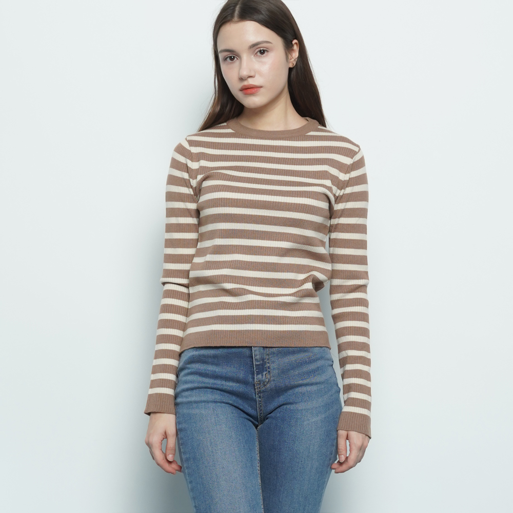 V-Neck Ribbed Long Sleeve Knit_Deep Beige