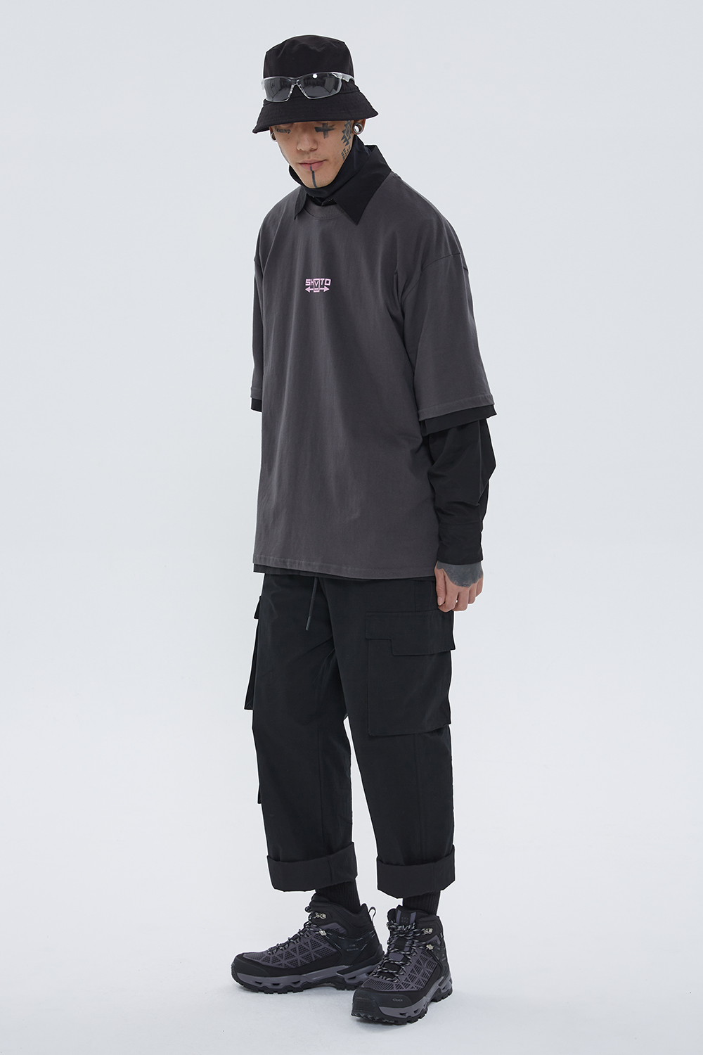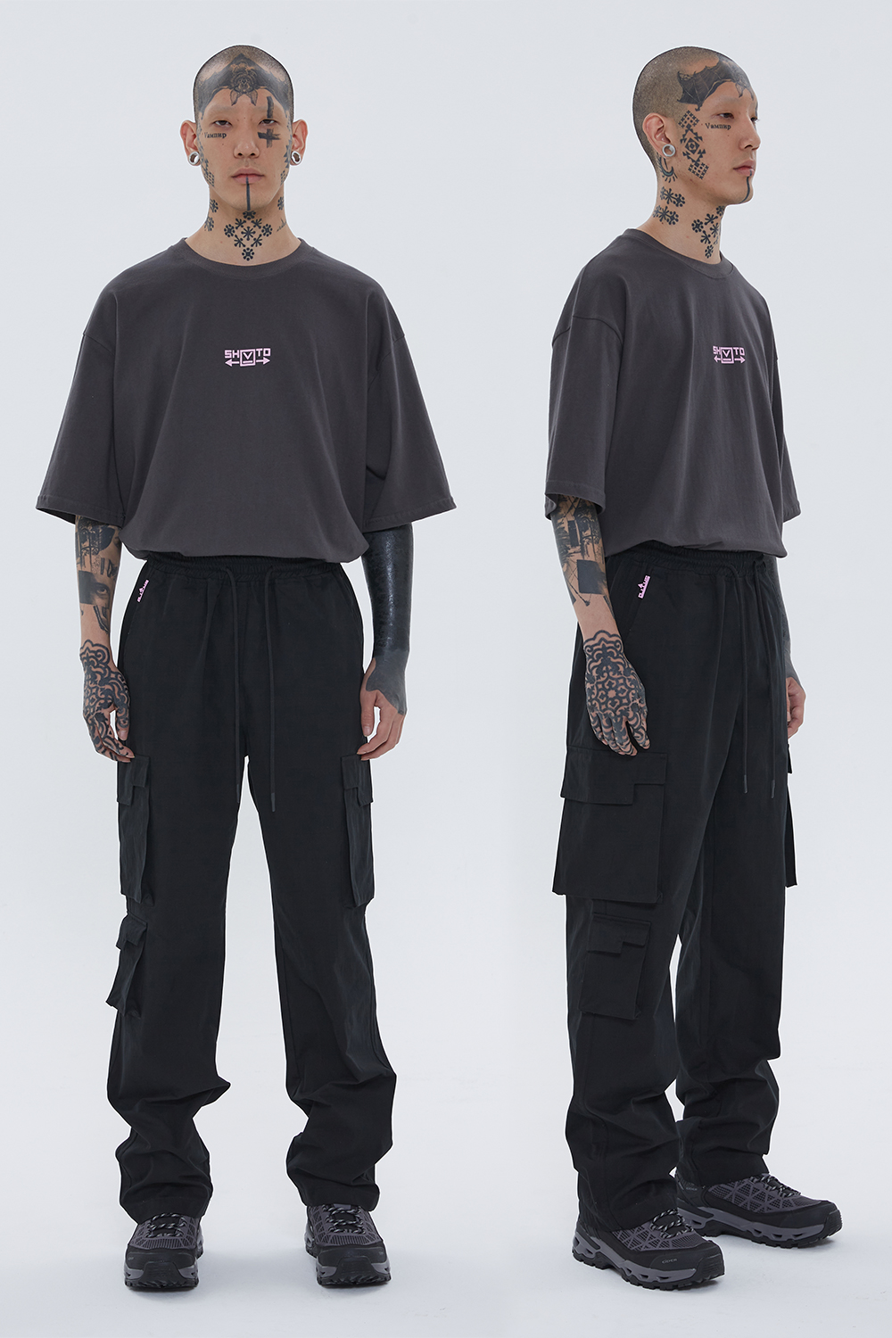 2WAY Zipper Big Cargo Pants Gray