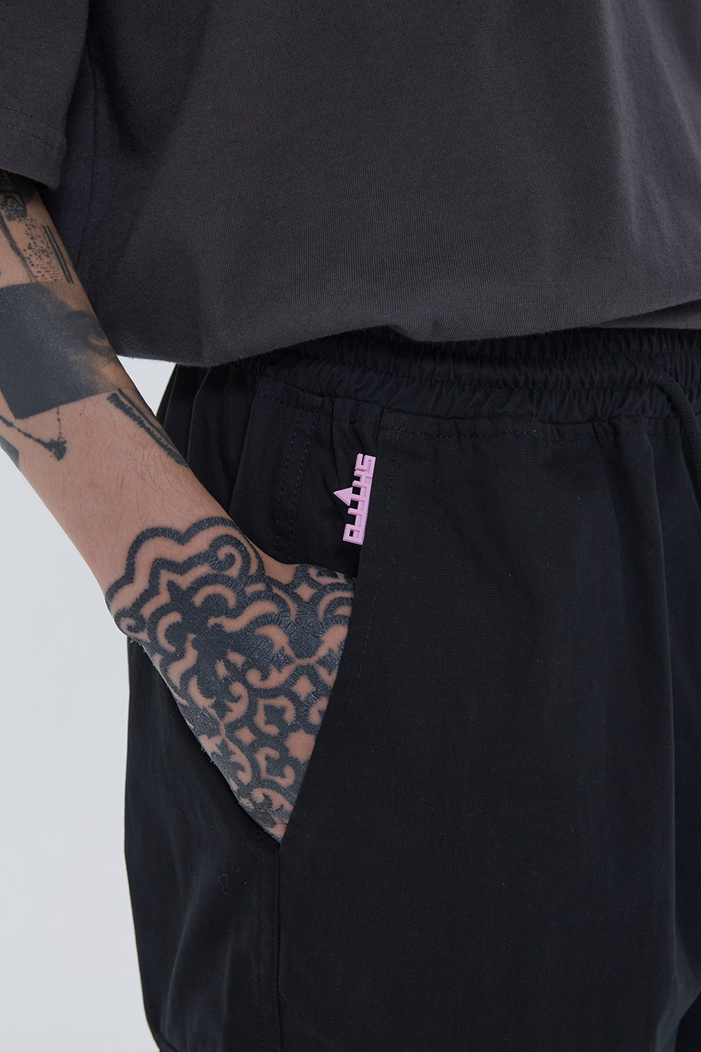 Plastick Bandage Double Bandage Sweat Pants Pigment Black