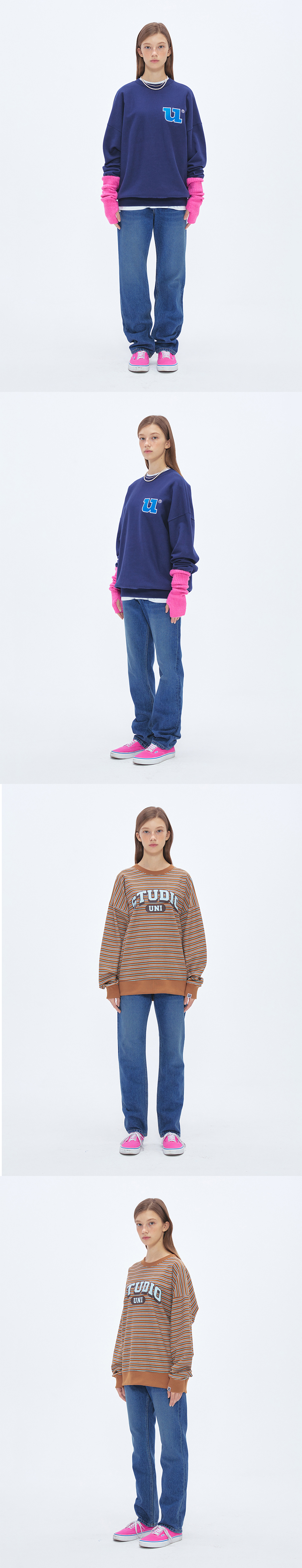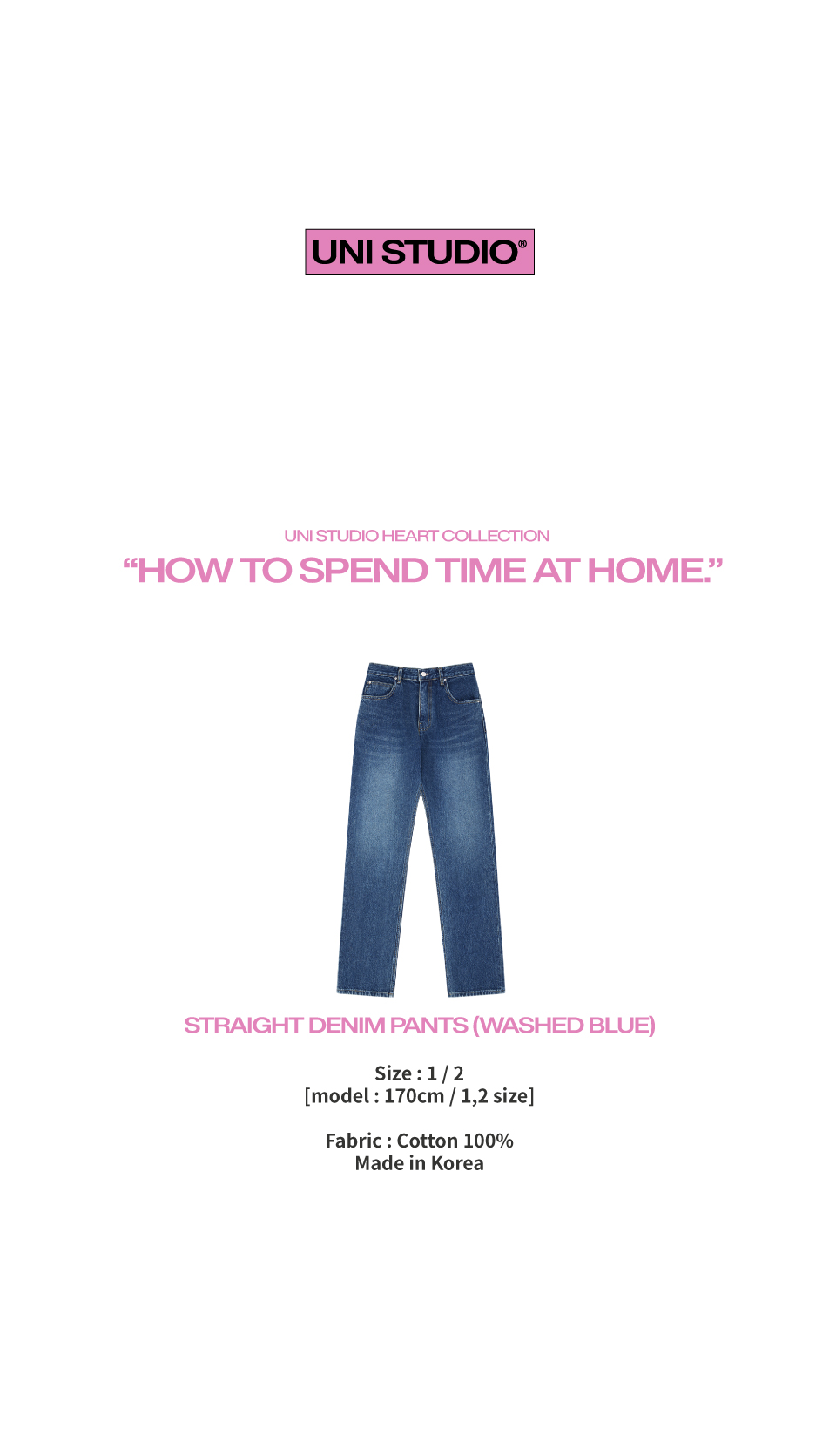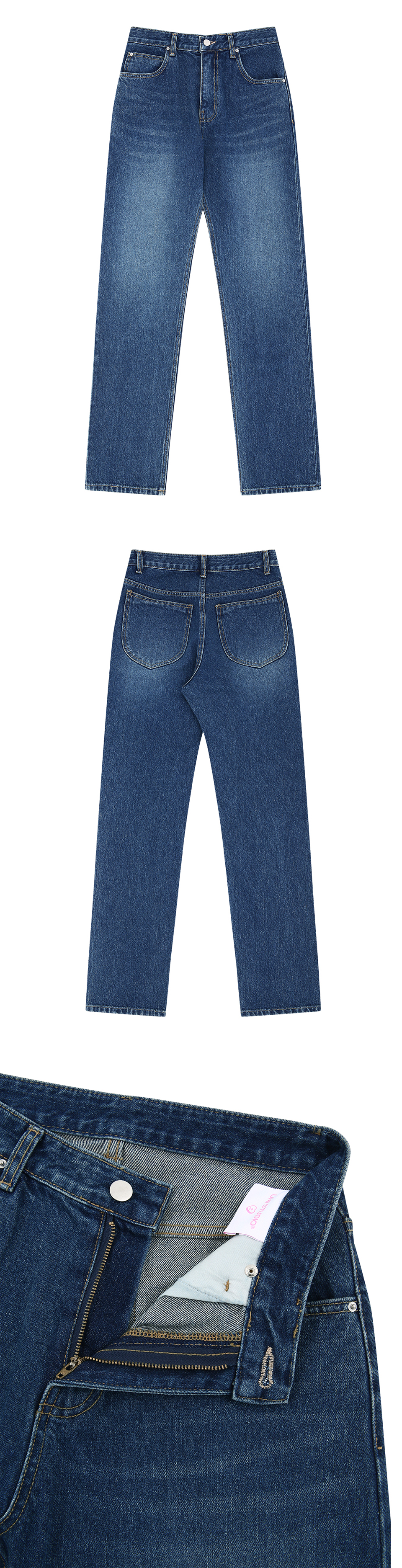 뒷포켓 D자수가 포인트인 와이드 데님팬츠