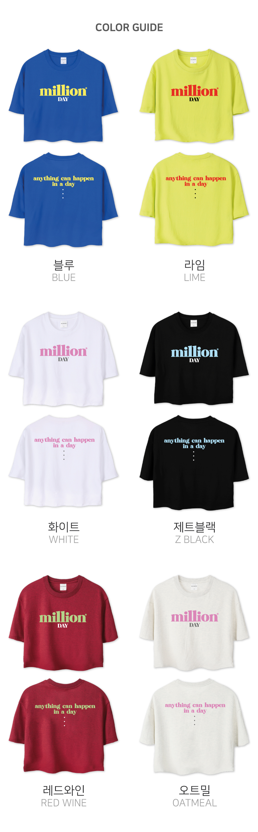 MILLION DAY SMALL LOGO CROP T-SHIRT(6colors)