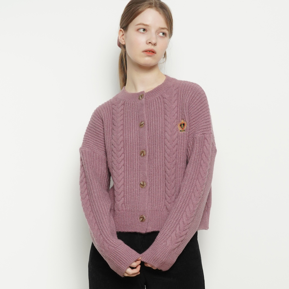 클래식하고 베이직한 꽈배기 조직과 볼드하지 않은 미디움 사이즈의 패턴으로 캐주얼한 디자인의 브이넥라인 니트 가디건 입니다.