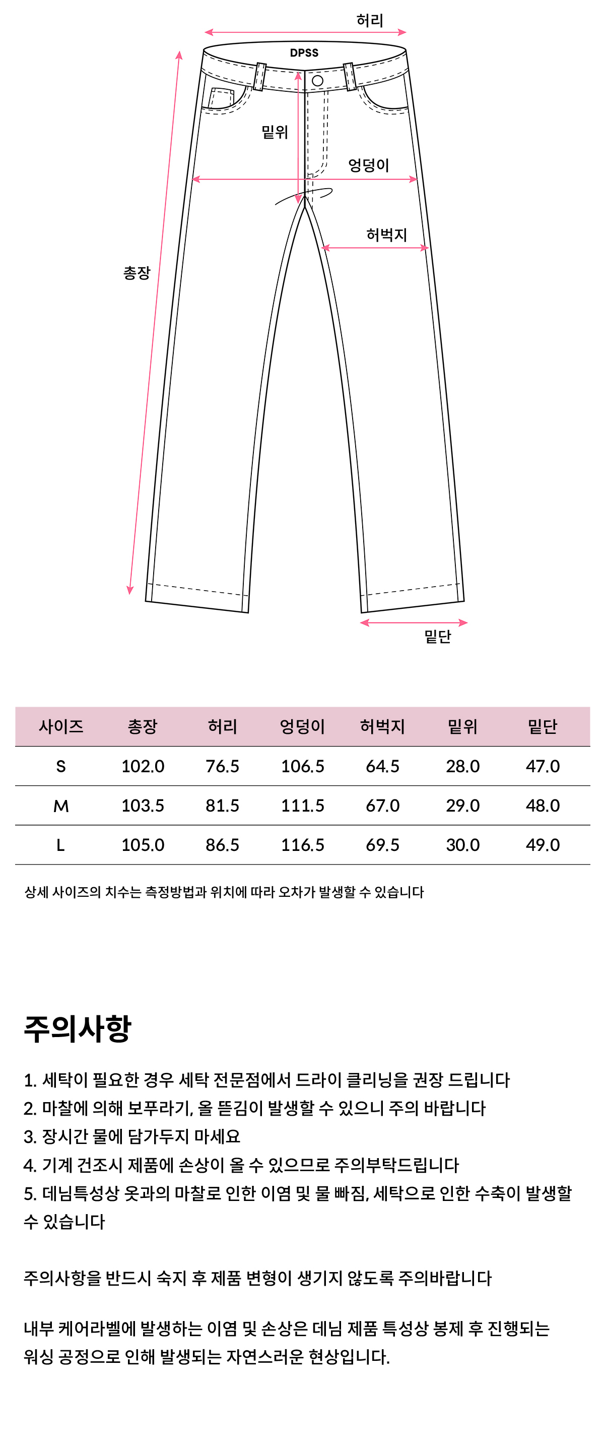 슬라브원단에 빈티지한 워싱 및 오염된듯한 워싱을 한 데님팬츠