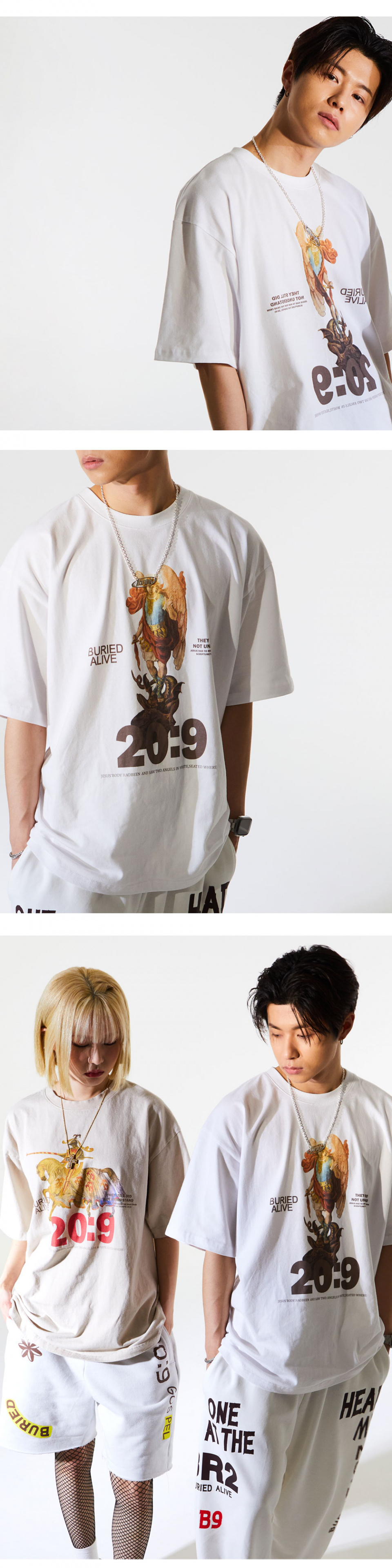 가벼운 소재로 그래픽이 특징인 스트릿 캐쥬얼 반팔티셔츠