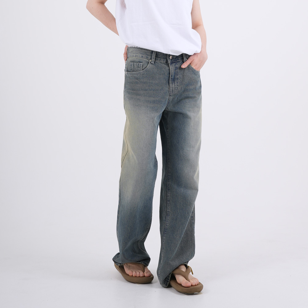 TWIST INCISION WASHING DENIM PANTS(MEDIUM BLUE)