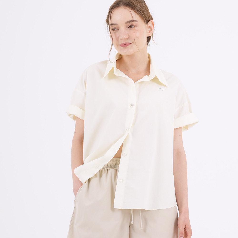 사랑스러운 룩의 완성도를 높이는 셔링 디테일 반팔 셔츠