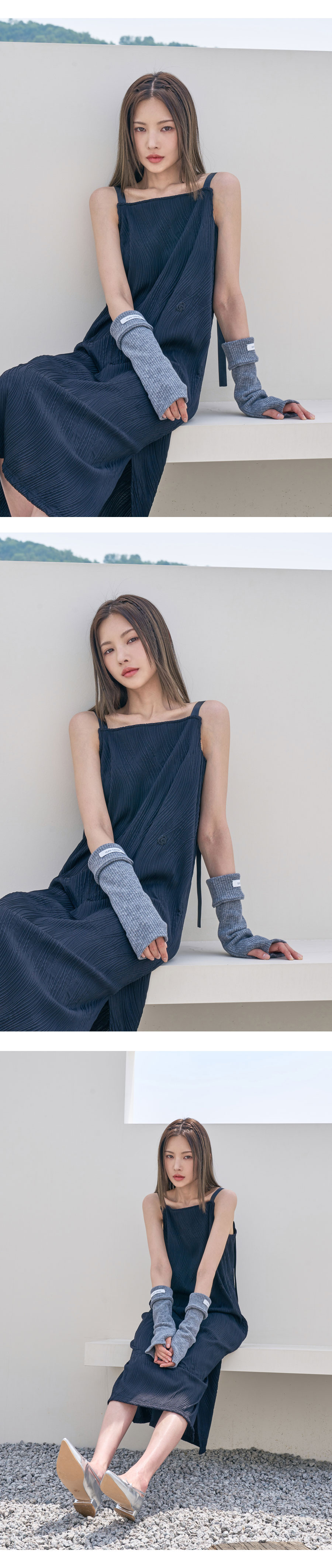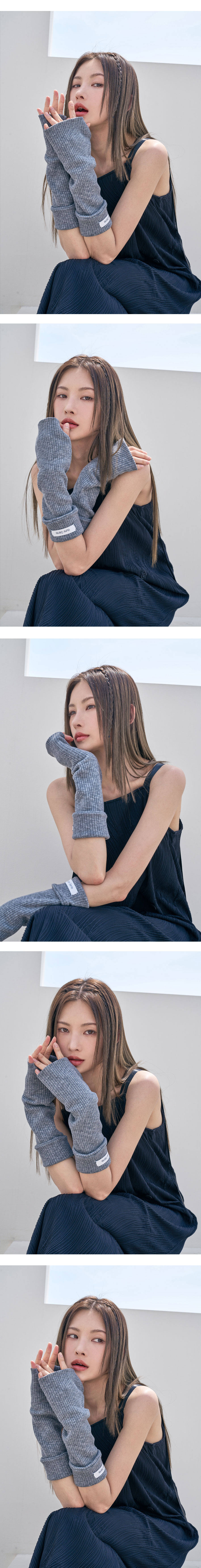 Vintage Label Fingerless Knit Gloves ((melange gray))