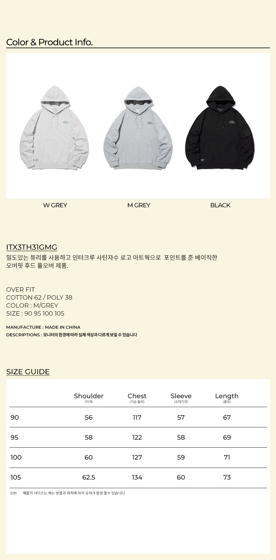 자수 오버핏 후디입니다.