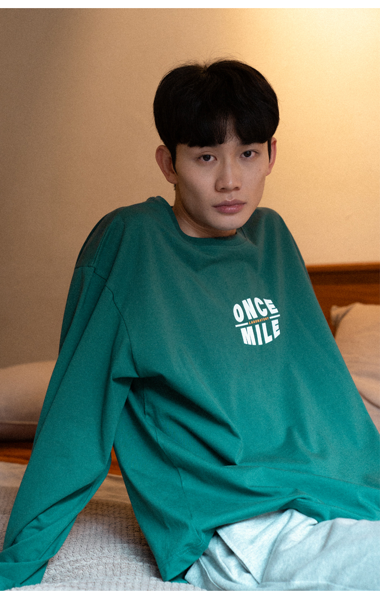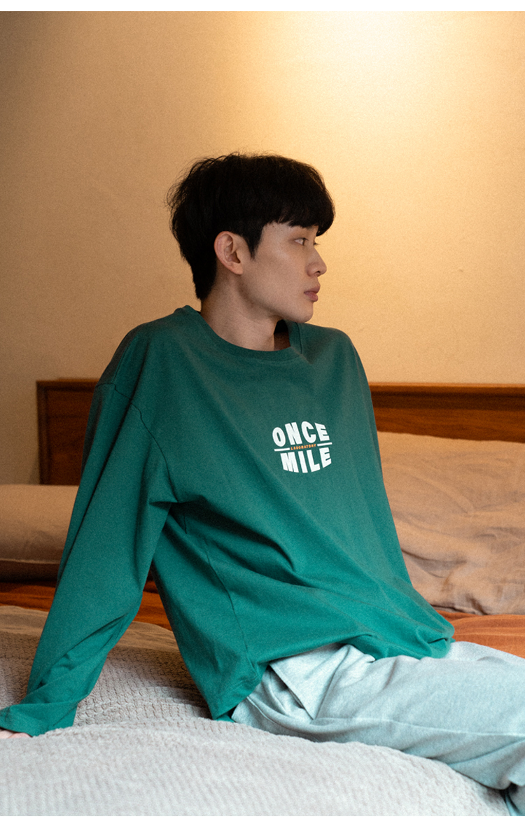 See-through Lettering Loose Fit Long Sleeve (Sky Blue)
