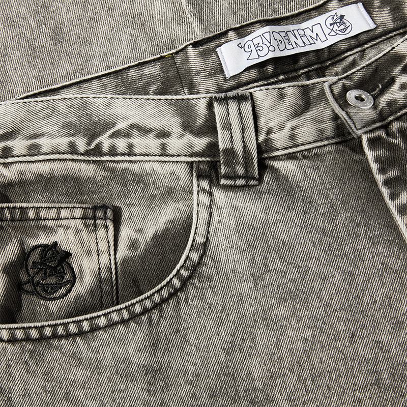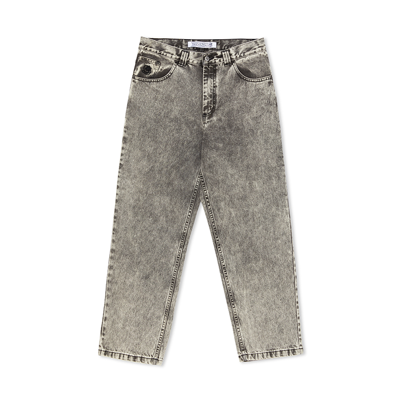 슬라브원단에 빈티지한 워싱 및 오염된듯한 워싱을 한 데님팬츠