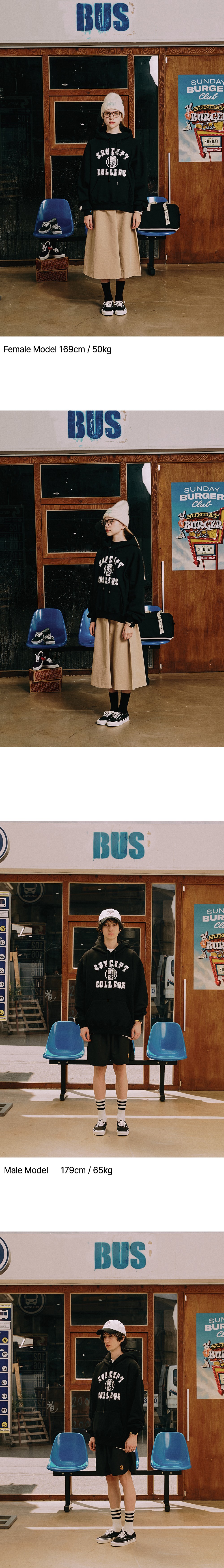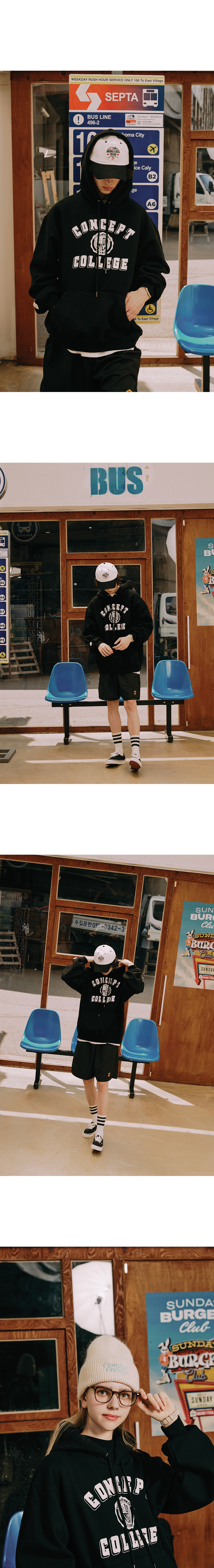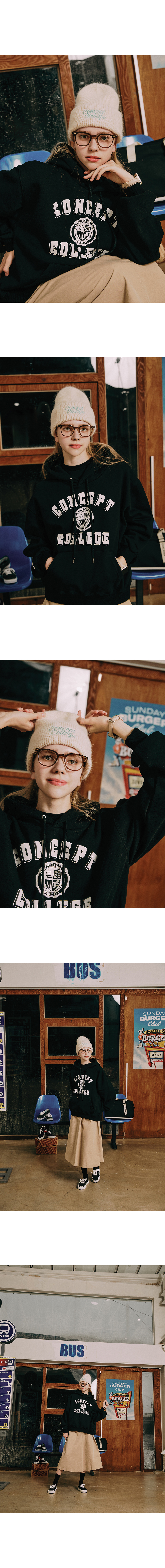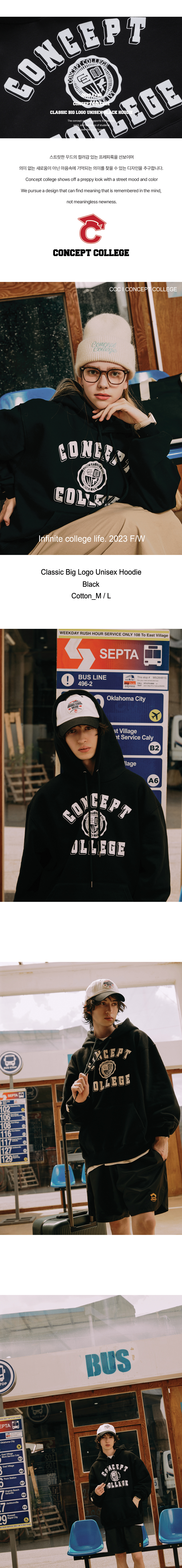 컨셉트 컬리지의 클래식 로고를 베이스로 디자인된 남녀공용 후디입니다.