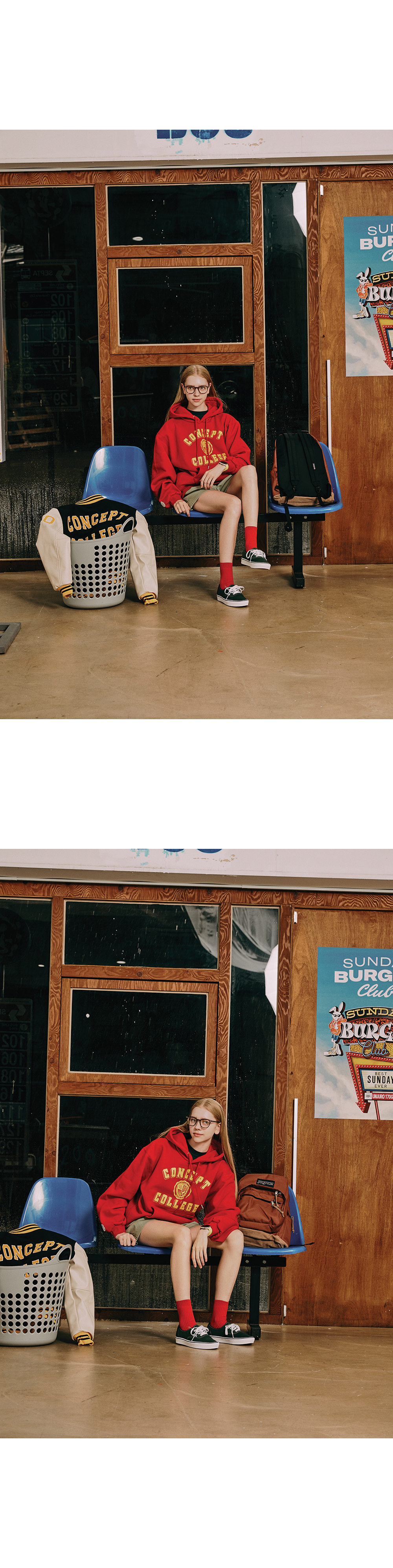 컨셉트 컬리지의 클래식 로고를 베이스로 디자인된 남녀공용 후디입니다.