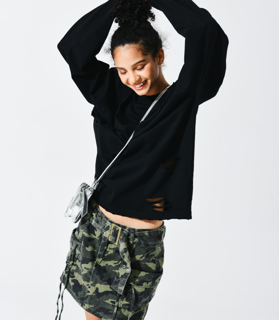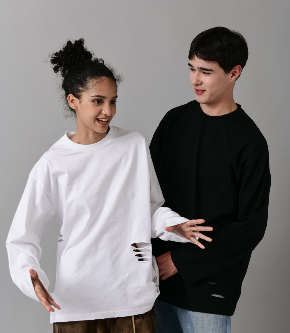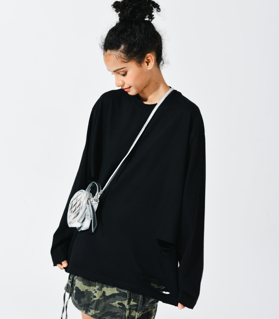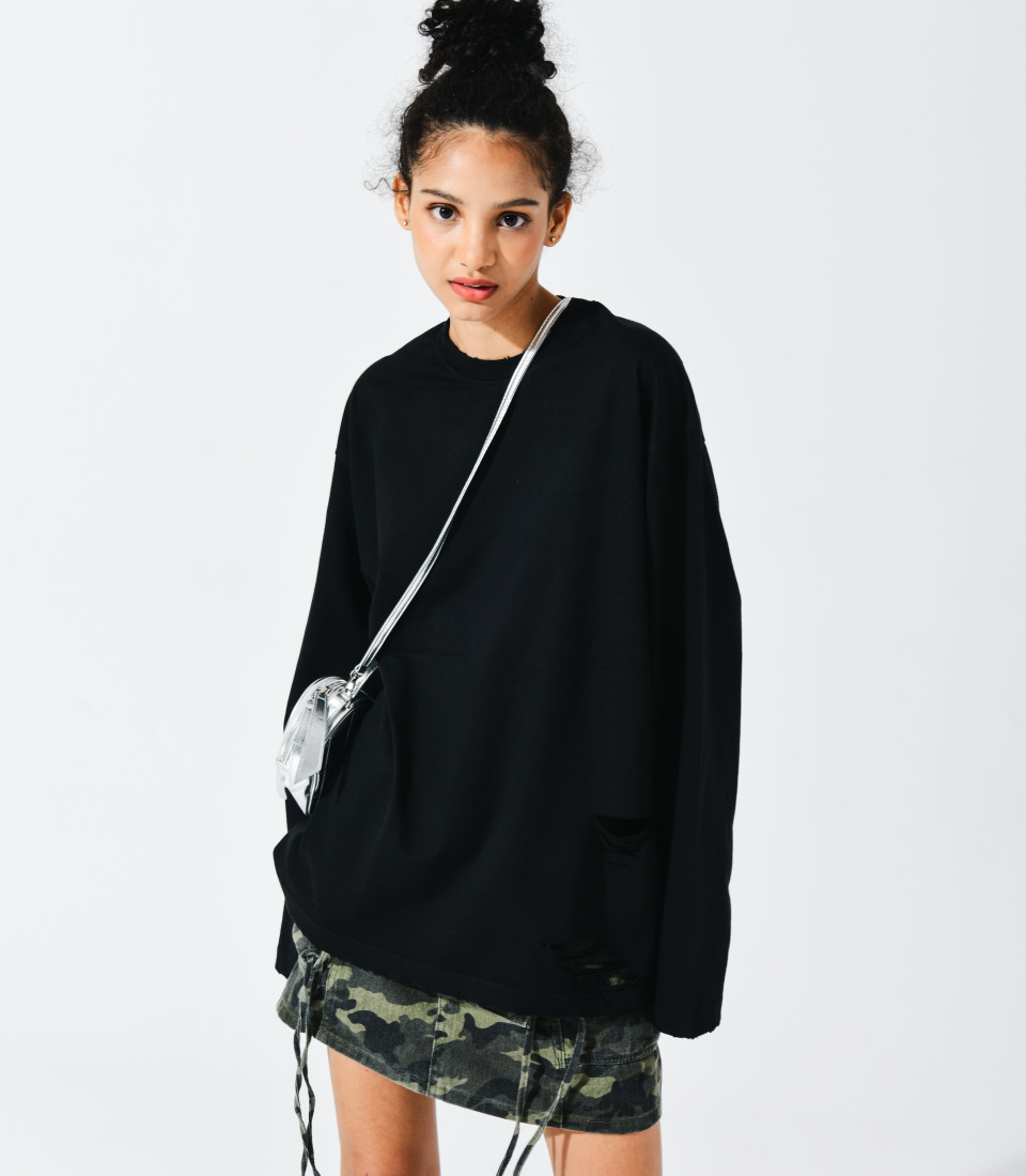 메쉬 원단,페이즐리 패턴 오버핏의 긴팔 티셔츠