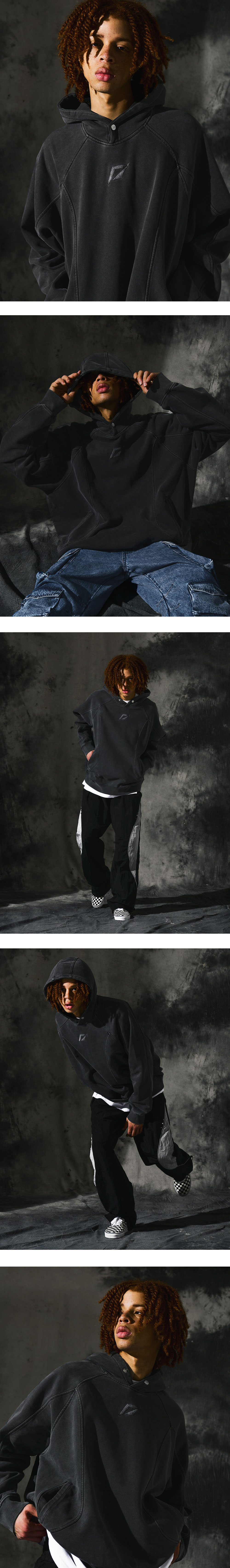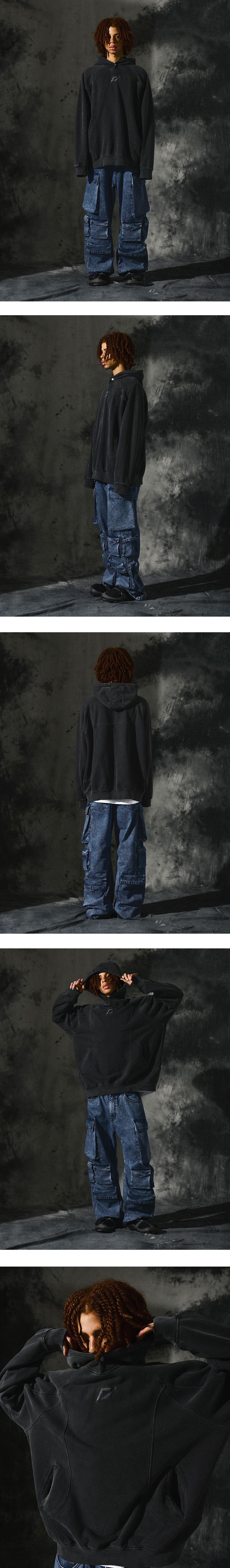 오버핏 후드 배색 엠보자수 후드 블랙(FCF3TS645M)