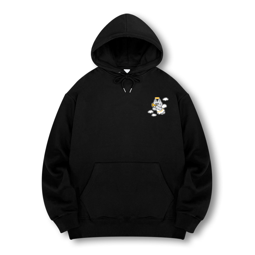 RIDING BIKE CAT 오버핏 후드 티셔츠 (블랙)