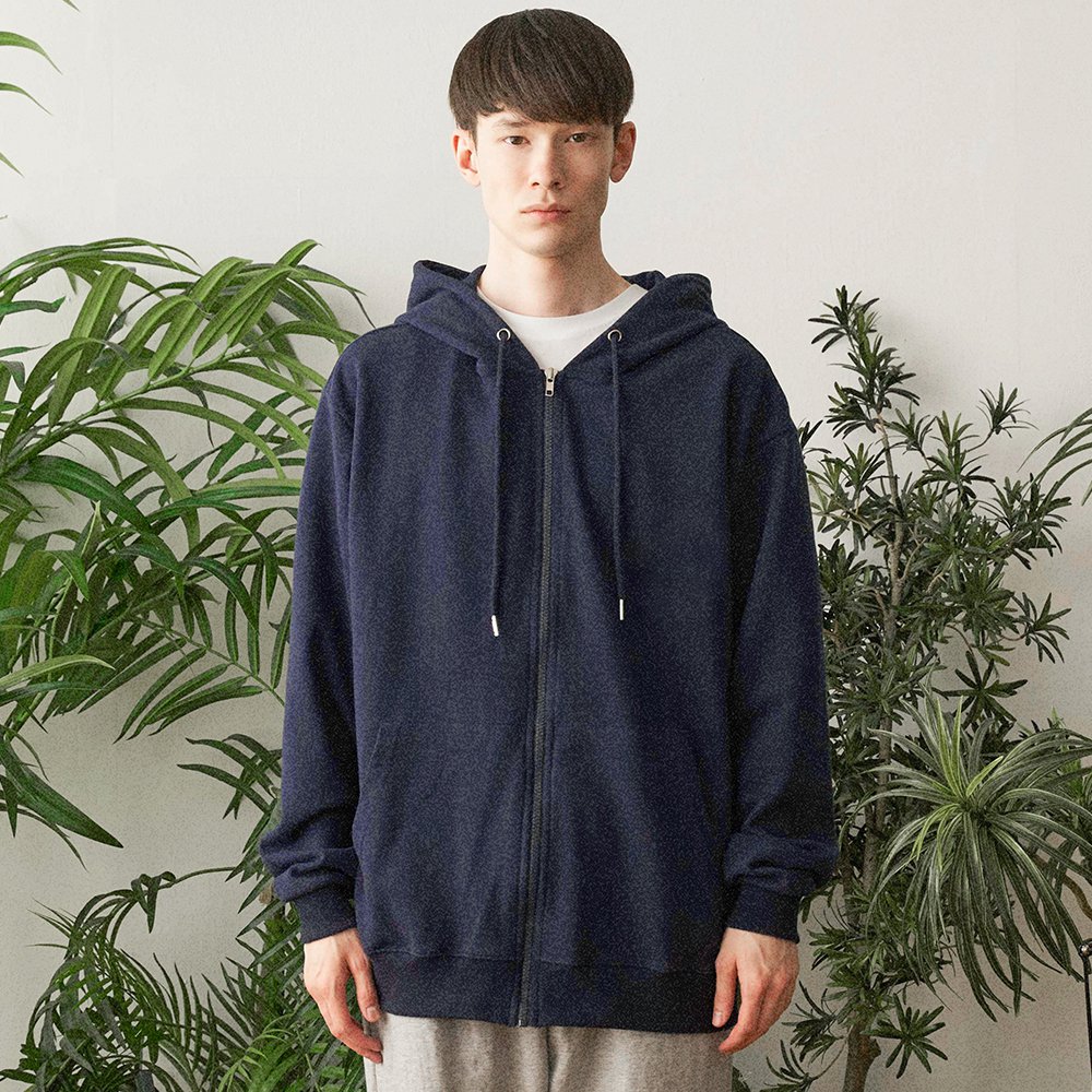 Oversized Plain Two-way Hoodie Zip-up (Melange)