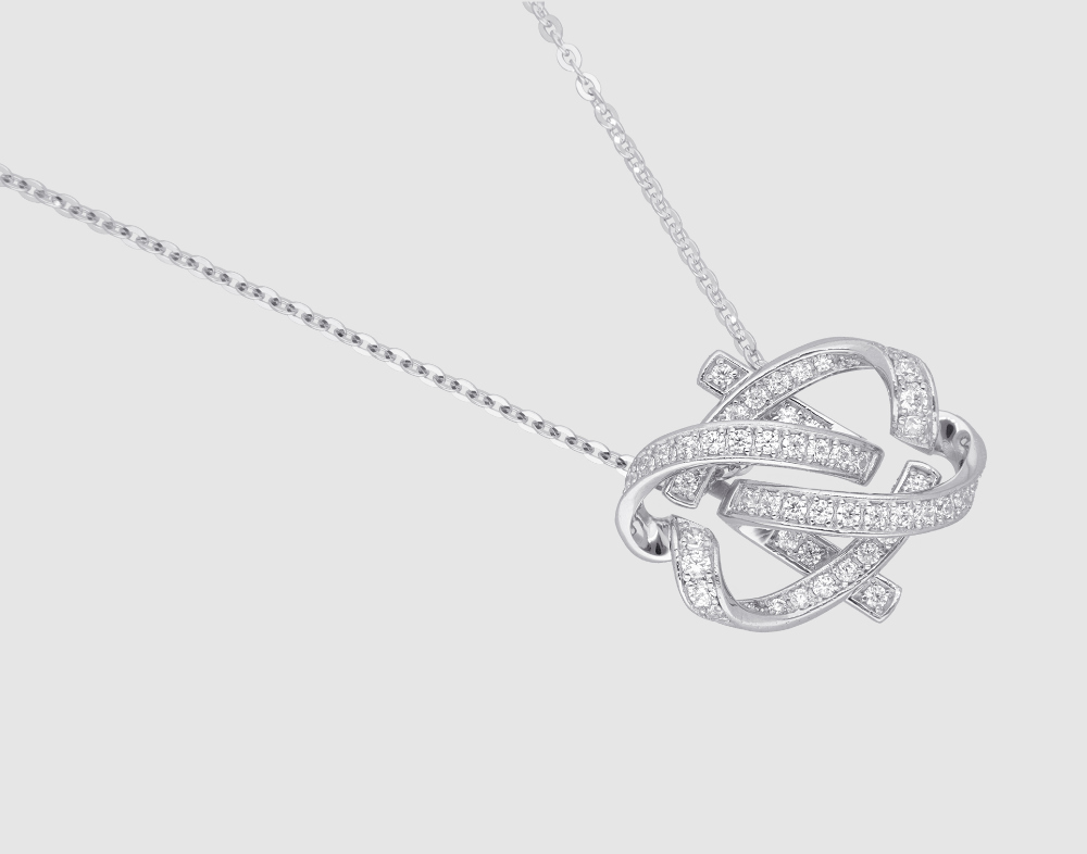리본 실루엣의 실버 바디는 우아하고 부드러운 느낌을 연출하고 정교한 파베 세팅으로 섬세함과 아름다움을 극대화하였습니다.