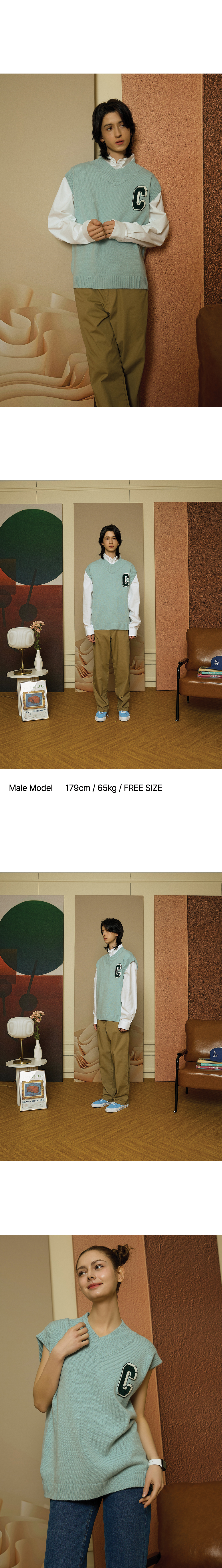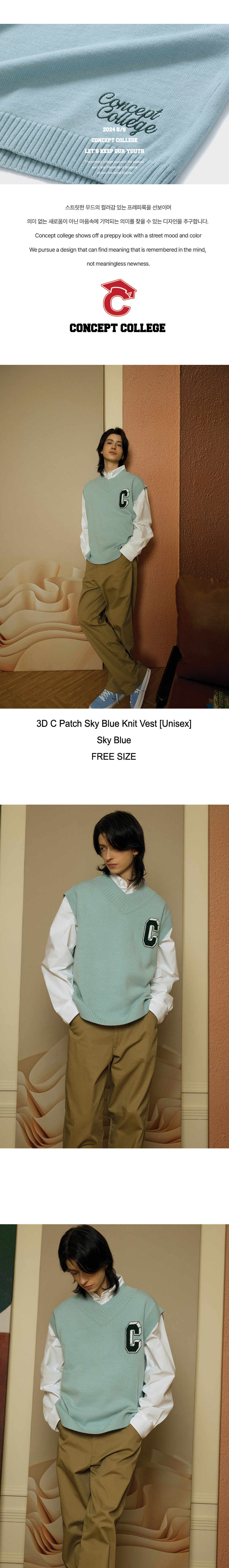 입체C 패치 스카이블루 니트 베스트 [남녀공용]