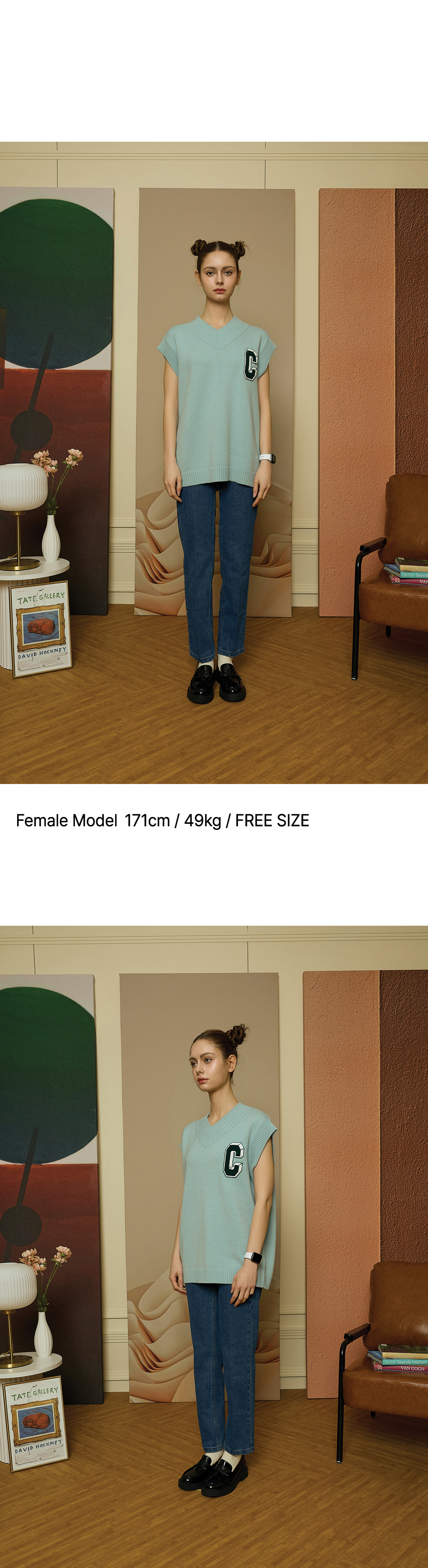 3D C Patch Sky Blue Knit Vest [Unisex]