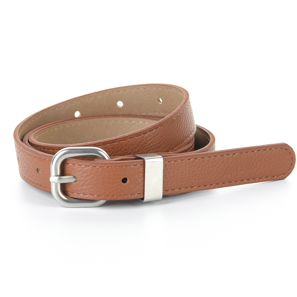M23 Stitch Half Round Buckle Fake Leather Belt Camel