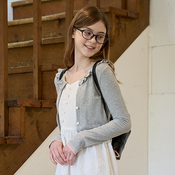 은은한 프릴 디테일이 더해진 러블리한 무드의 브이넥 가디건