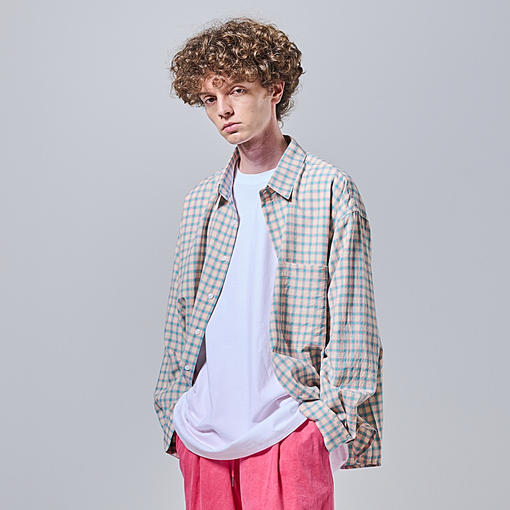 Detachable Crease Check Shirt S167 Pale Pink Purple