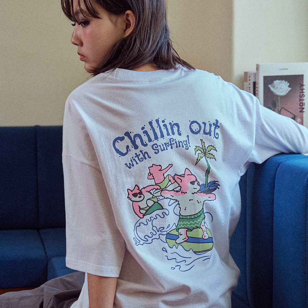 가벼운 소재로 그래픽이 특징인 스트릿 캐쥬얼 반팔티셔츠